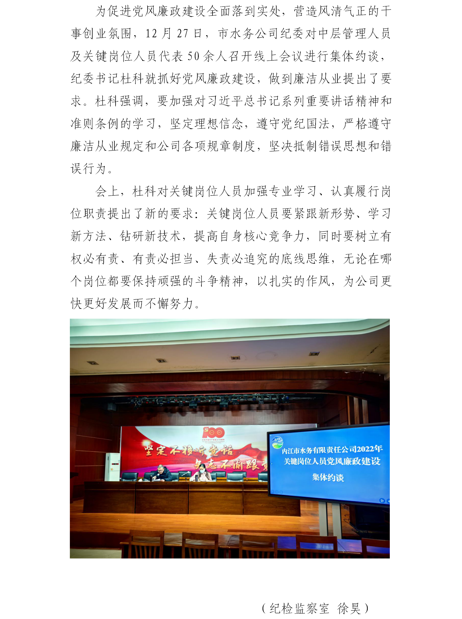 市水務(wù)公司紀委對關(guān)鍵崗位人員進行集體約談