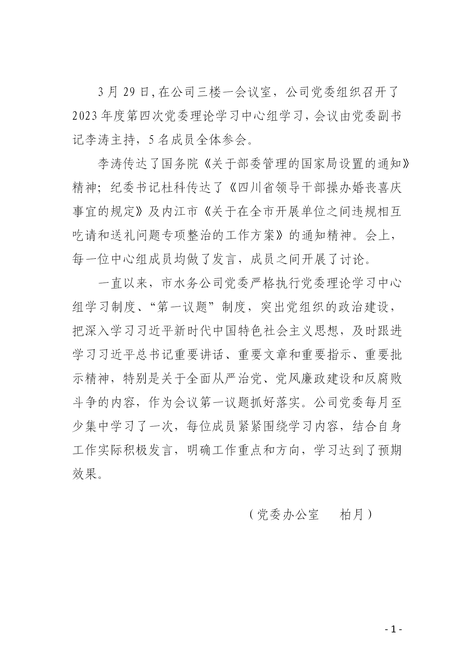 公司黨委嚴格執行黨委理論學習中心組學習制度、“第一議題”制度