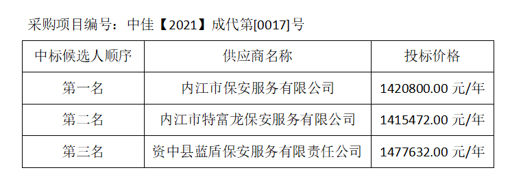 內(nèi)江市水務(wù)有限責(zé)任公司保安服務(wù)項(xiàng)目評(píng)標(biāo)結(jié)果公示