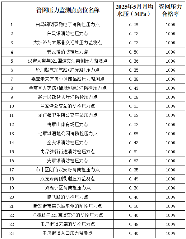 內江市水務有限責任公司2025年5月管網壓力月報
