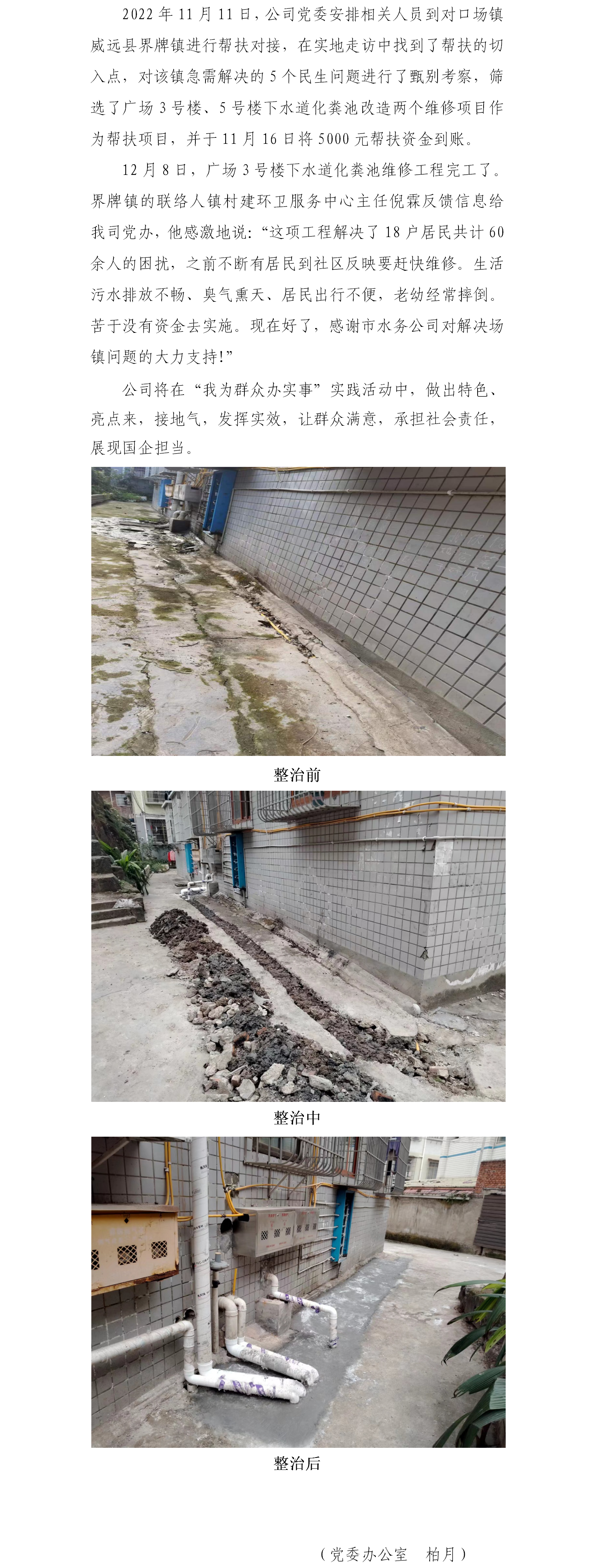 市水務公司投入場鎮建設的幫扶資金發揮出實效