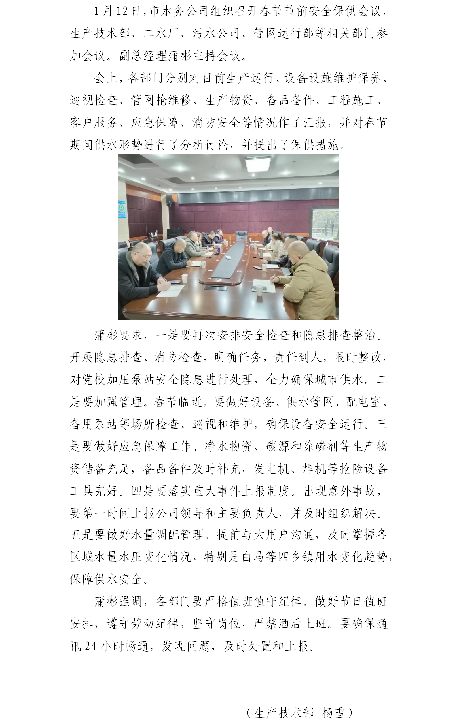 市水務公司召開春節前保障供排水安全生產工作會議