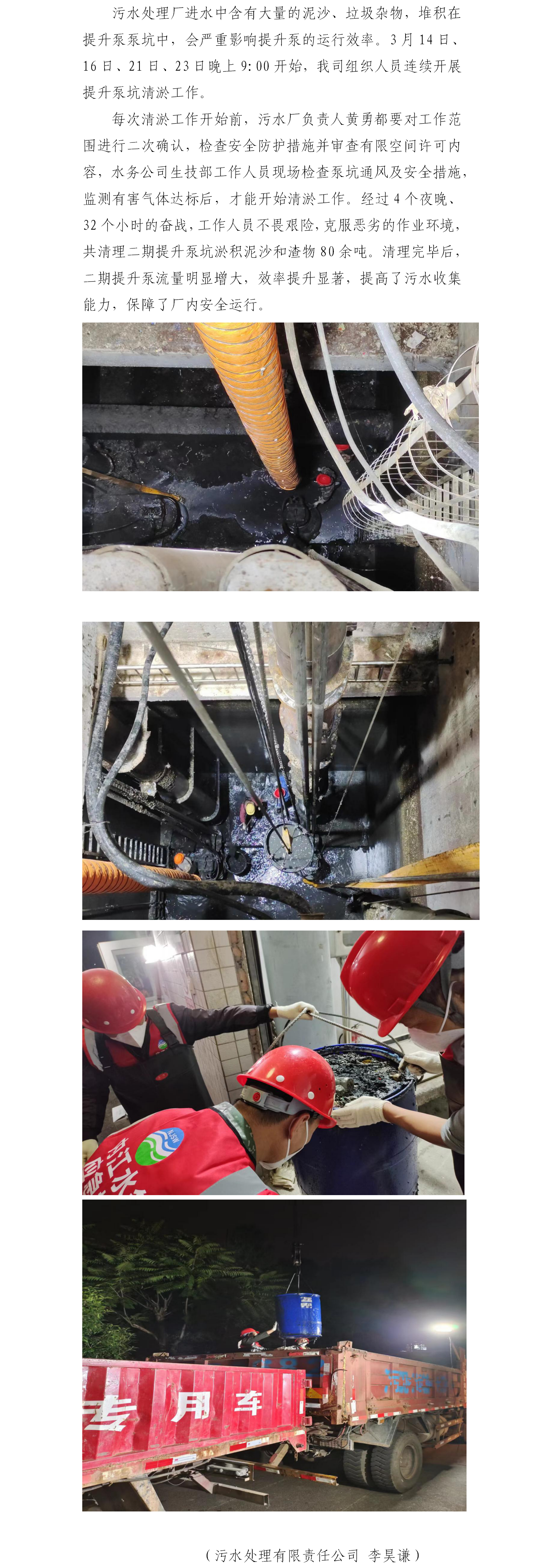 內江市污水處理有限責任公司泵坑清淤,提升設備運行效率