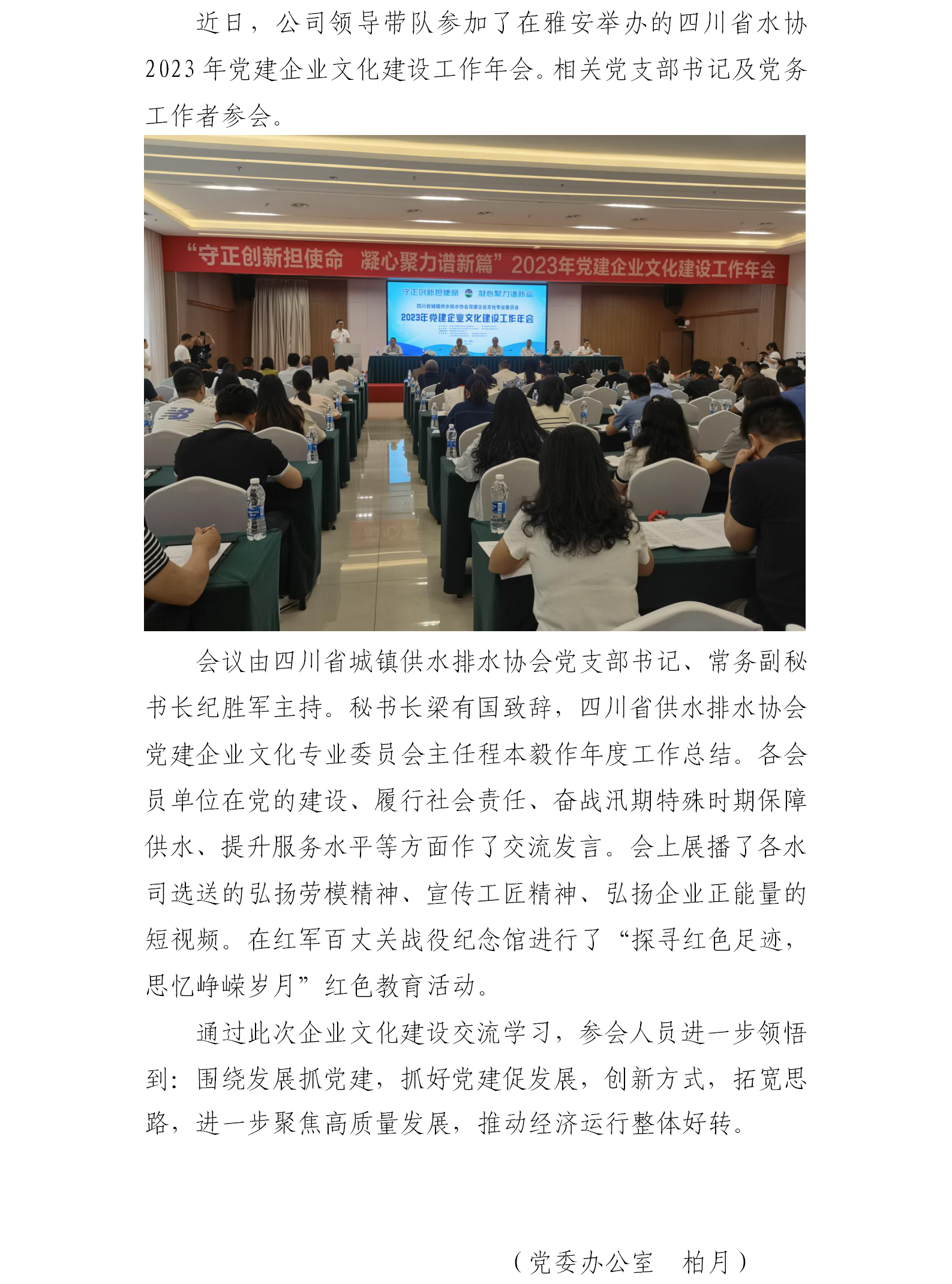 公司派代表參加四川省水協2023年黨建企業文化建設工作年會
