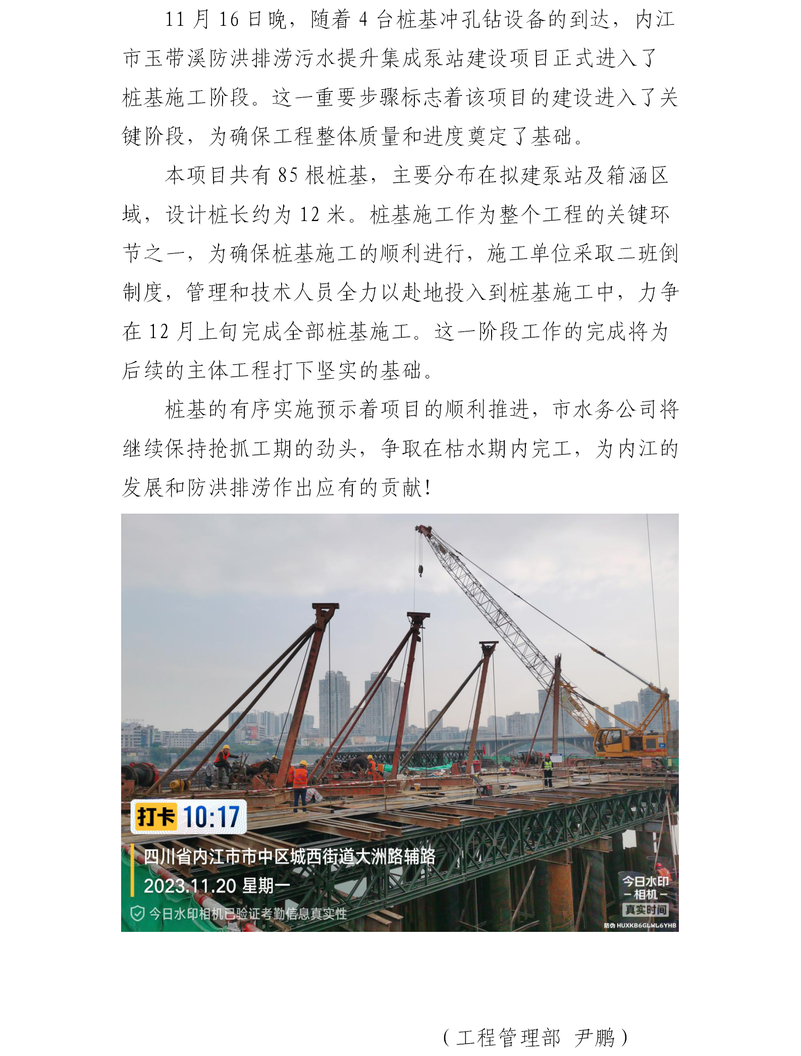 內(nèi)江市玉帶溪防洪排澇污水提升集成泵站建設(shè)項(xiàng)目進(jìn)入樁基施工階段