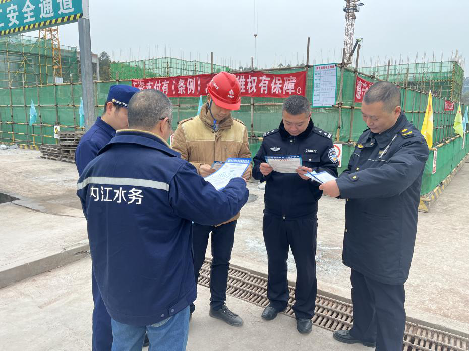 12月21日,內江水務有限責任公司與公安、城管、消防三個部門進行聯合執法活動。