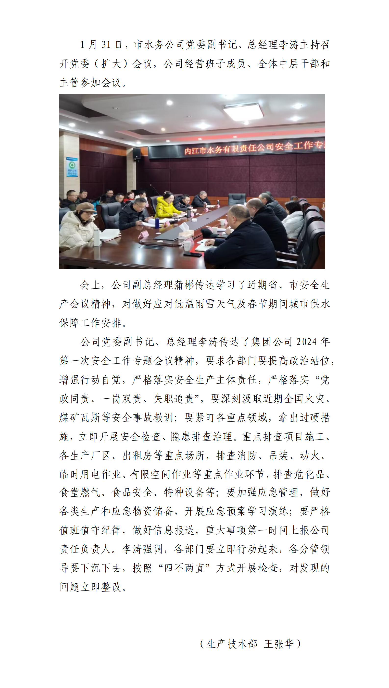 水務(wù)公司召開(kāi)安全生產(chǎn)專(zhuān)題會(huì)