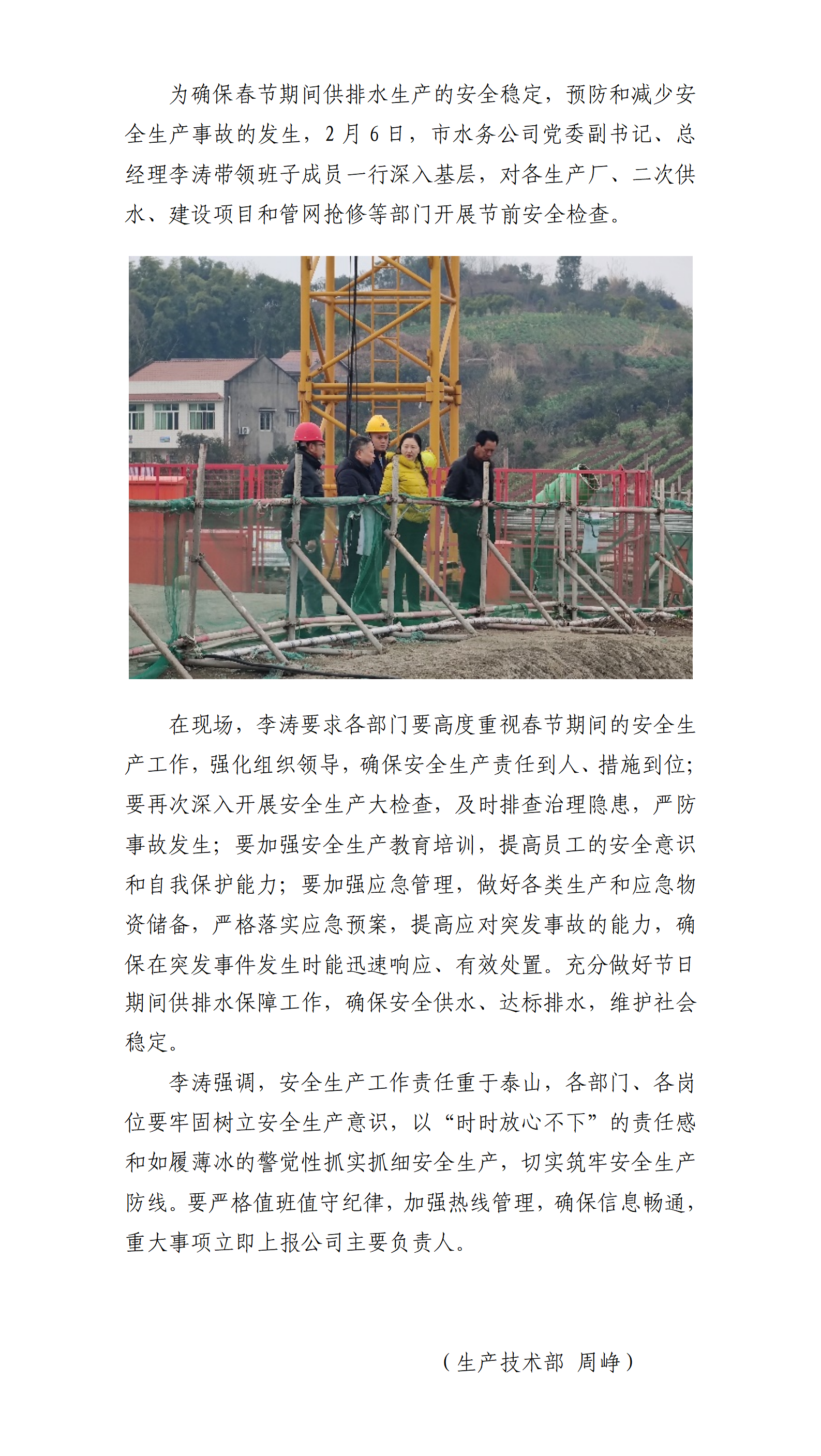 開展2024年春節前安全生產大檢查 確保春節供排水生產安全