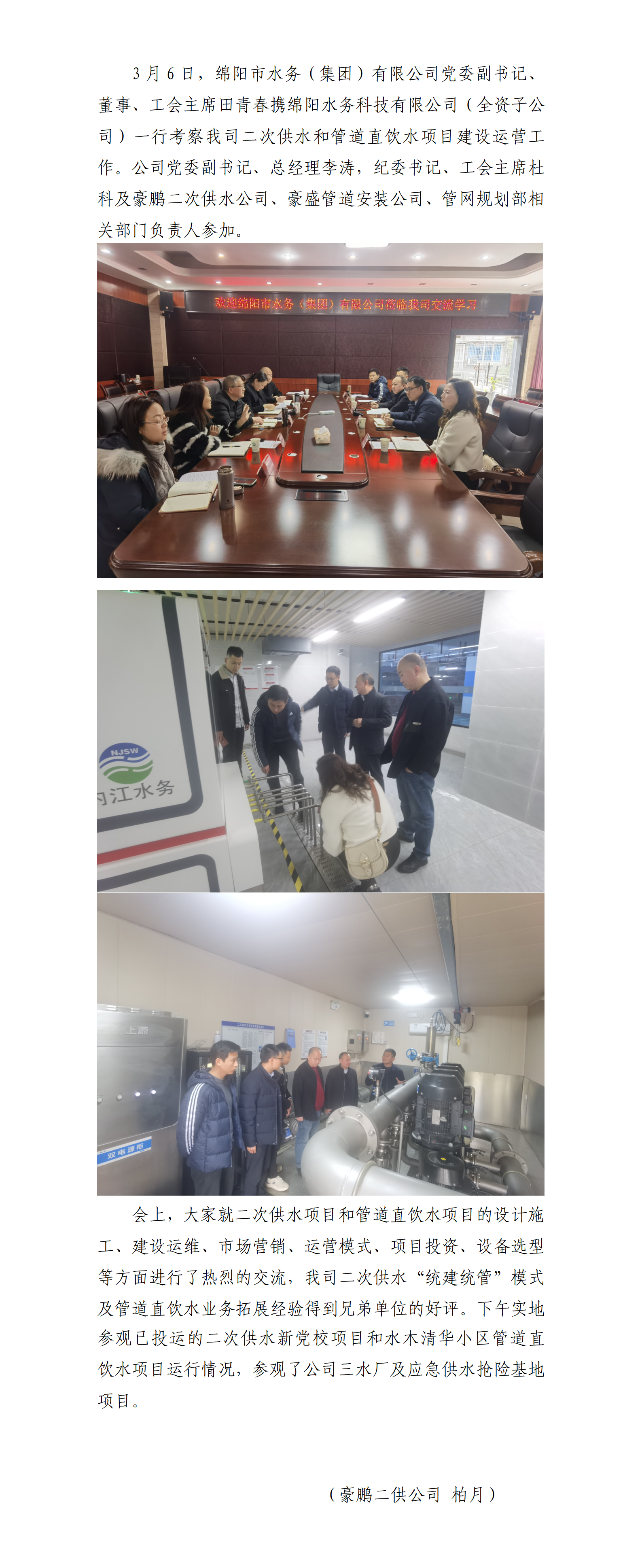綿陽市水務(集團)公司考察我司二次供水和管道直飲水運營工作