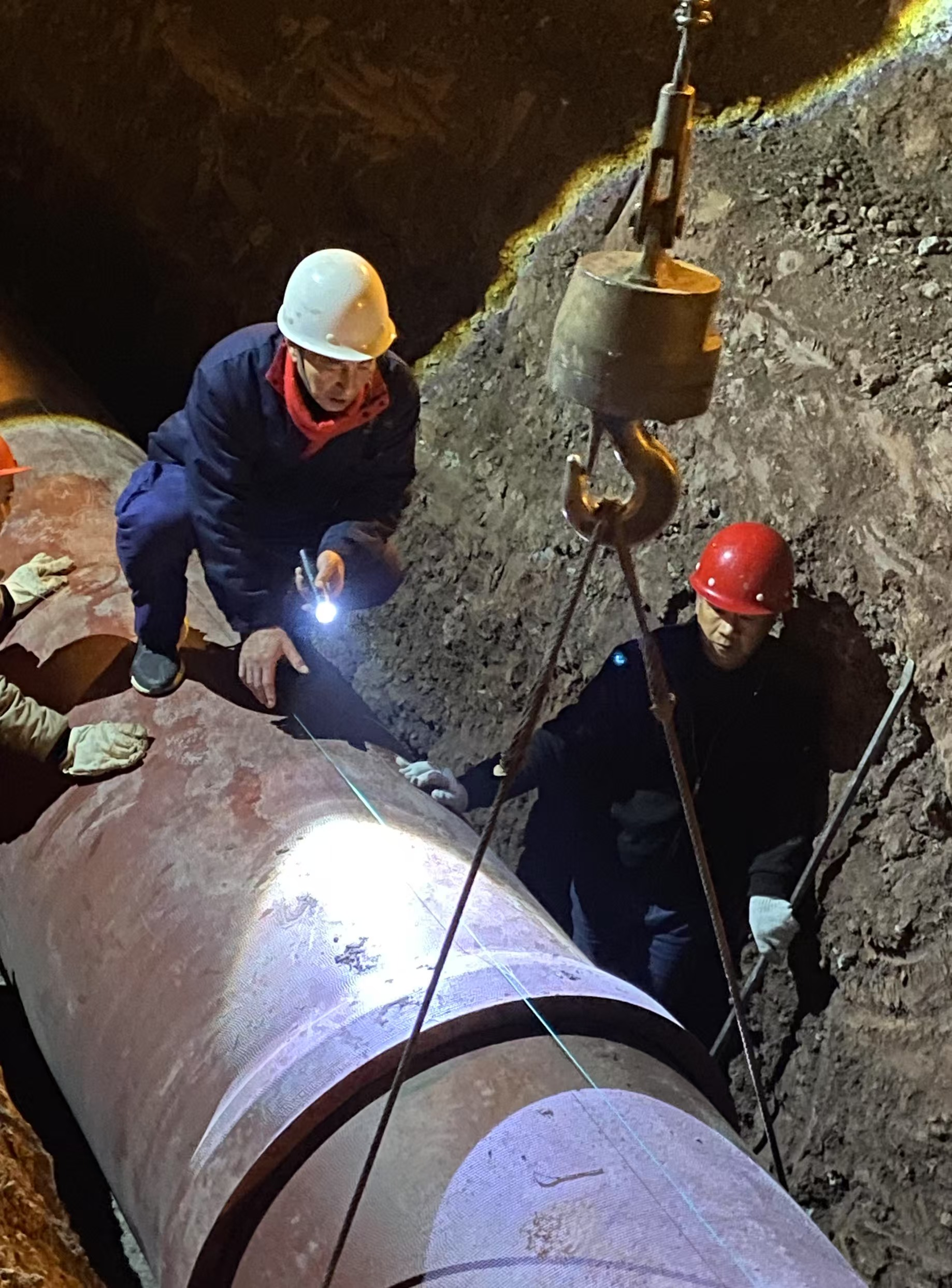 在寒風中,工人們用雙手熟練地操作著各種冰冷的機械設備,進行著五河路到大千路口段污水管網鋪設工作。他們始終將質量放在首位,一次次地調整管道位置,確保每一根管道拼接合攏、無縫連接,每一根管道的連接。他們用實際行動詮釋了水務人的責任、擔當與堅守。
