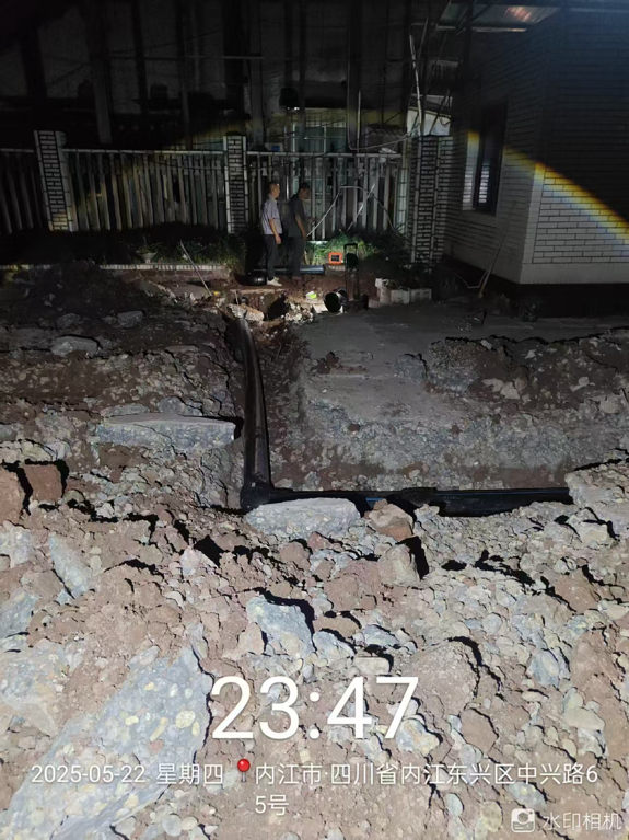 搶修現(xiàn)場,維修人員面對夜間視線不佳、高溫作業(yè)、現(xiàn)場環(huán)境復(fù)雜等多重挑戰(zhàn),爭分奪秒、迎難而上,通宵達旦開展搶修工作。次日凌晨3點58分,維修人員熊弈在工作群里發(fā)布消息:“東興區(qū)政府DN150鋼管因漏點在建筑下方無法維修,已從旁改管繞過漏點,160PE管改管約60米,63PE管改30米,加裝50銅閘閥一只,現(xiàn)已修復(fù)通水?!敝链耍瑩屝薰ぷ鲌A滿結(jié)束,恢復(fù)正常供水。