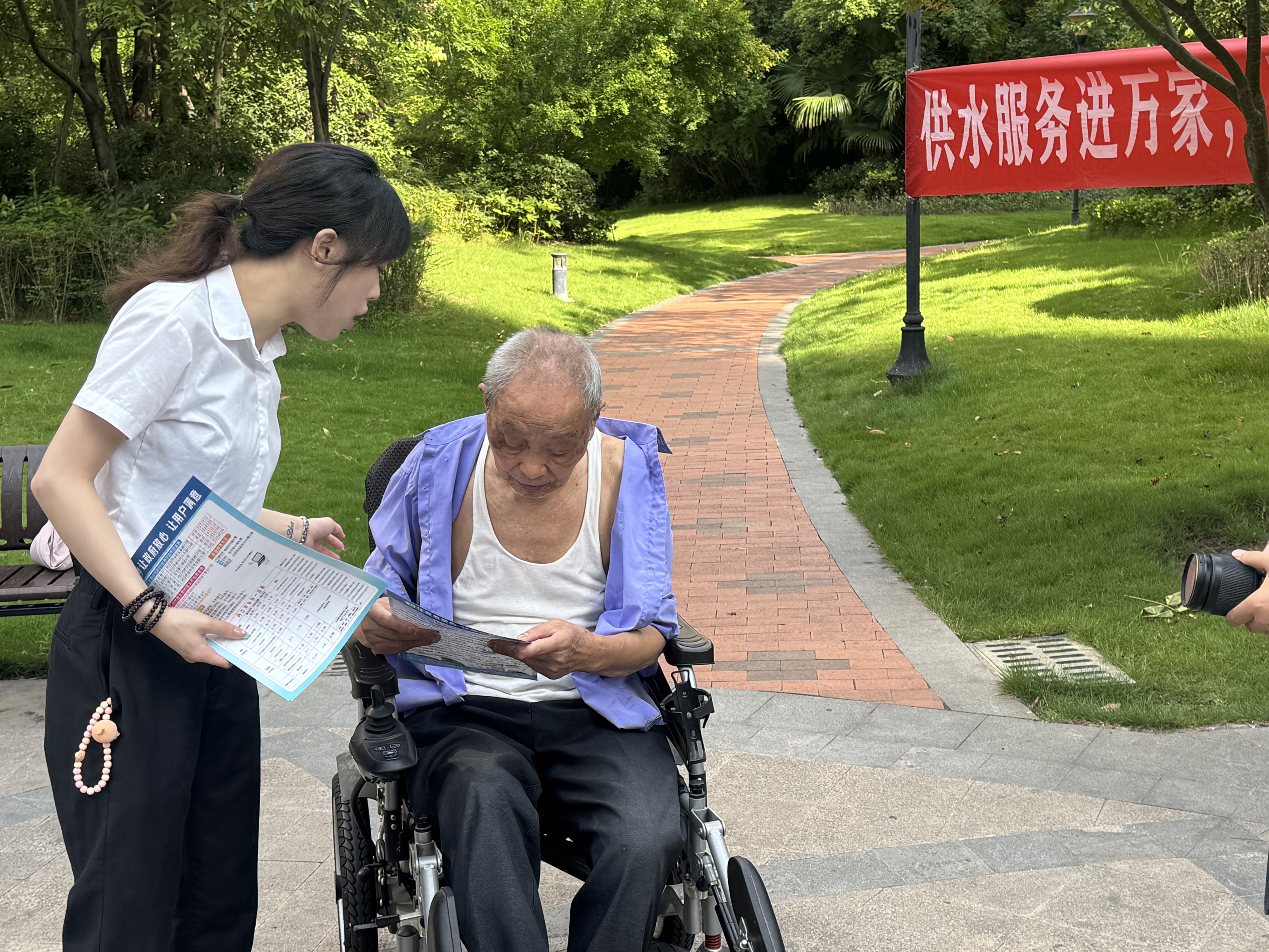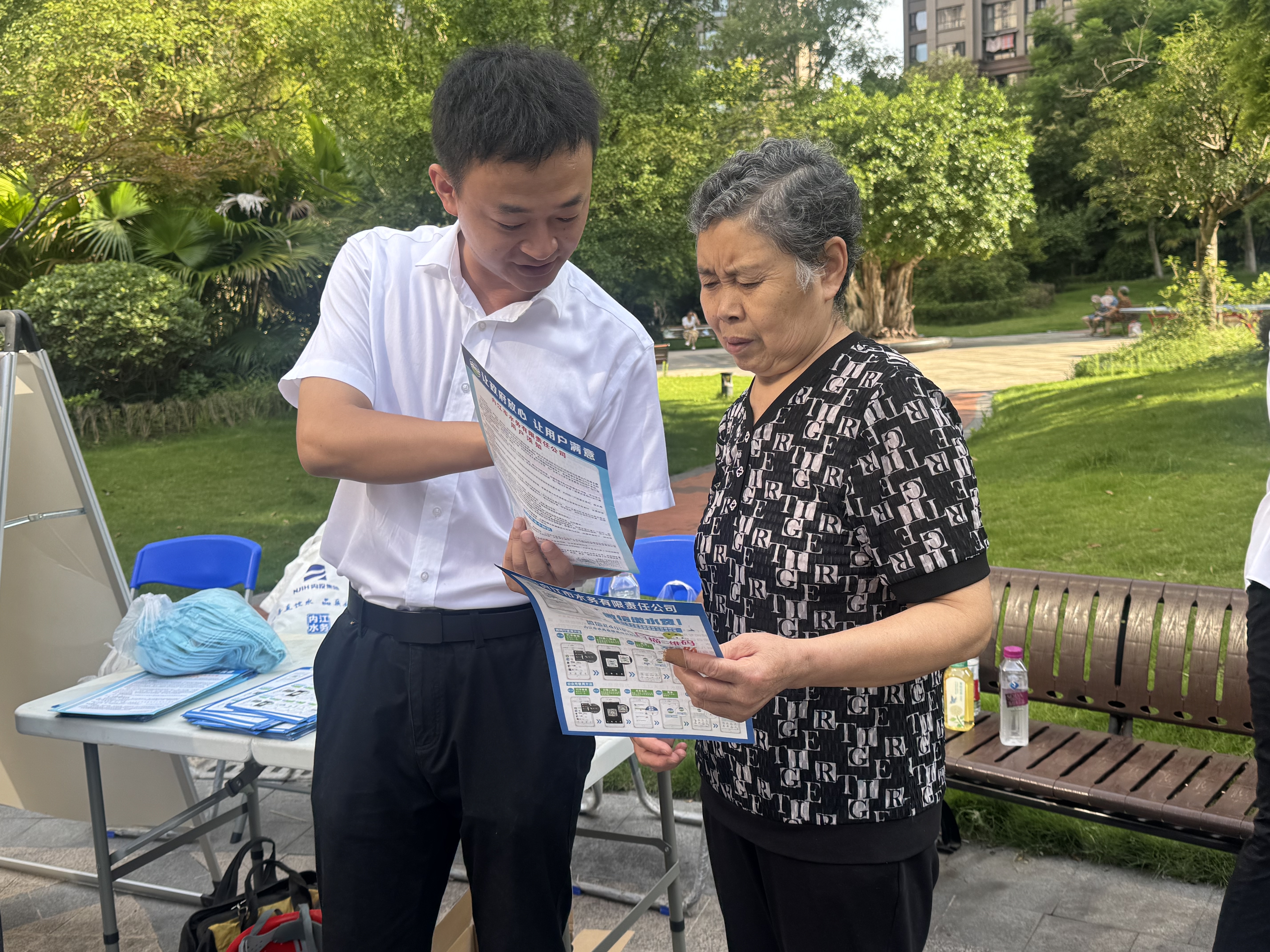 活動現場,工作人員通過設置宣傳展板、發放宣傳資料等多種形式,向居民普及安全用水、節約用水等知識,耐心講解水費繳納、用水報裝、水表更換等業務辦理流程,并詳細介紹了公司在水質保障、管網維護、水表檢測及管道直飲水等方面的情況。同時,針對居民日常生活中遇到的用水問題,工作人員進行了現場答疑解惑,并提供專業的解決方案。