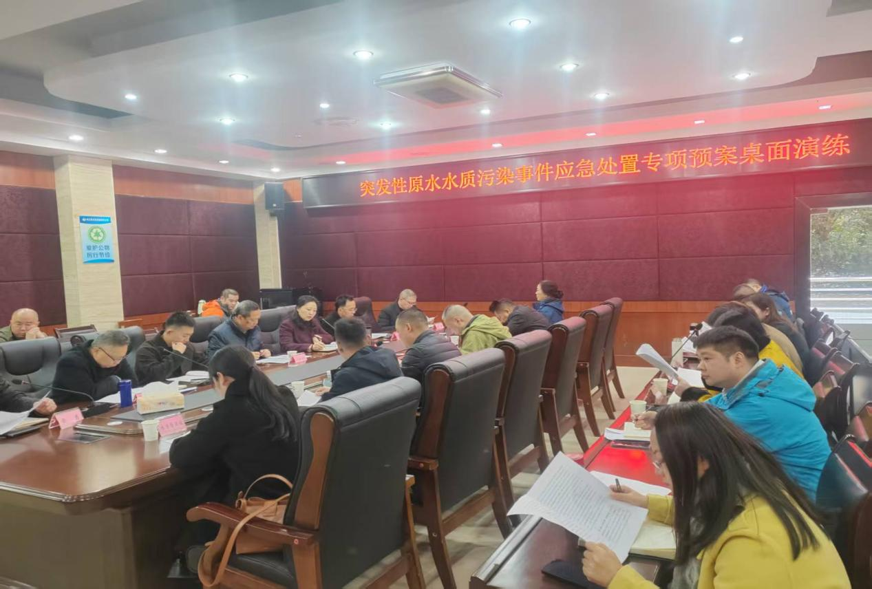 為提升公司應(yīng)對突發(fā)性原水水質(zhì)污染事件的處置能力,深刻吸取杭州余杭自來水異味事件的教訓(xùn),11月18日,市水務(wù)公司開展了突發(fā)性原水水質(zhì)污染應(yīng)急處置桌面演練。市住建局四級調(diào)研員吳志剛、公用事業(yè)科科長陳亮親臨現(xiàn)場進(jìn)行指導(dǎo)。市水務(wù)公司黨委書記、董事長、總經(jīng)理李濤等公司班子成員以及公司相關(guān)部門人員參與了此次演練。